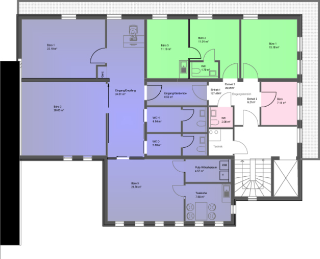 zu vermieten ist die grün eingezeichnete Fläche mit ca. 40qm
